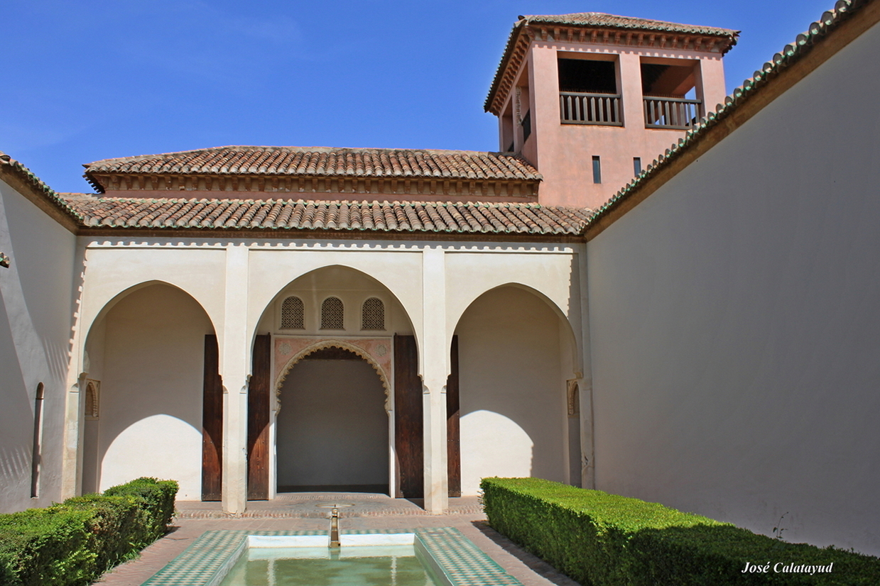 El agua no solo cumplía una función estética, sino que también proporcionaba frescor y un ambiente relajante, invitando al sosiego y la meditación tan propios de la arquitectura hispano-musulmana. Los pórticos con arcos de medio punto anteceden a las salas administrativas, y parte del pavimento original se conserva todavía. Este patio evoca la vida palaciega de la época nazarí, y representa uno de los ejemplos más refinados de la interacción entre vegetación, elementos hidráulicos y espacios arquitectónicos en la Alcazaba, convirtiéndose en una referencia obligada para entender el legado andalusí en Málaga.