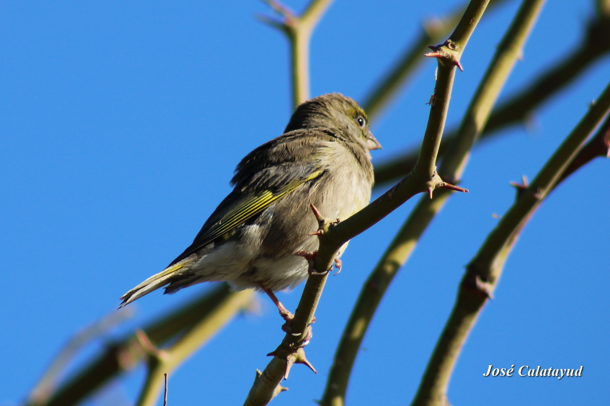 Le delta du Guadalhorce, le grand fleuve de la province de Málaga, est devenu une réserve naturelle qui permet des balades nature et la photographie d'oiseaux et de plantes sauvages. L'hiver dernier, j'ai pu entre autres photographier ce verdier d'Europe (Chloris chloris) qui est un petit passereau trapu, d’environ 15 cm, reconnaissable à son plumage verdâtre rehaussé de jaune vif sur les ailes et la queue, ainsi qu’à son bec conique puissant adapté aux graines. Le mâle arbore des teintes plus lumineuses que la femelle, dont les couleurs sont plus ternes et brunâtres. On l’observe fréquemment dans les jardins, haies et bois clairs, où son vol onduleux et son chant mélodieux, constitué de notes claires et de trilles rapides, trahissent sa présence. Il se nourrit principalement de graines mais complète son régime par des insectes au printemps pour nourrir ses petits.